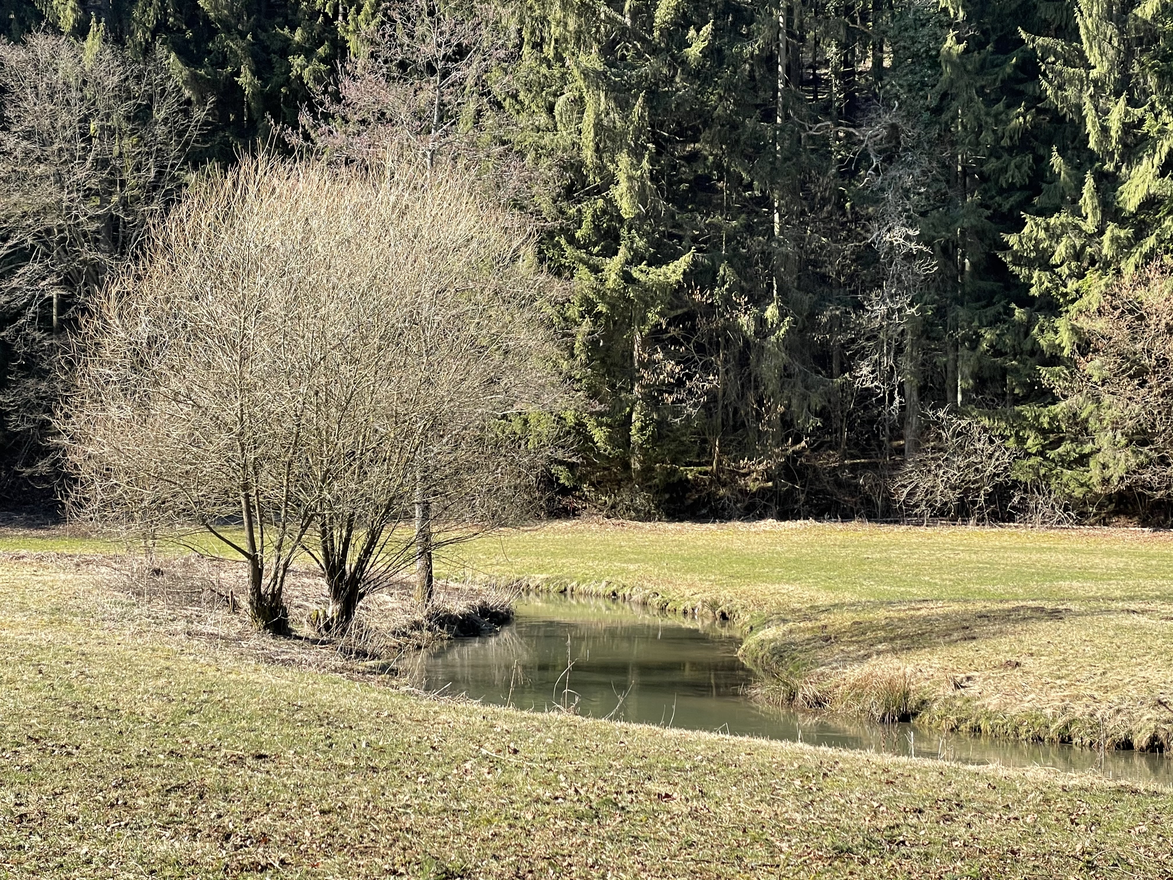 Nach ca 250 m gibt es eine schöne Bank mit Blick auf die Aufseß und ins unberührte Tal, der eher an Kanada als an Oberfranken erinnert